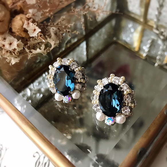 スワロフスキー ピアス 結婚式 前撮り ブルースワロフスキーピアス【上品・入学式・卒業式・結婚式